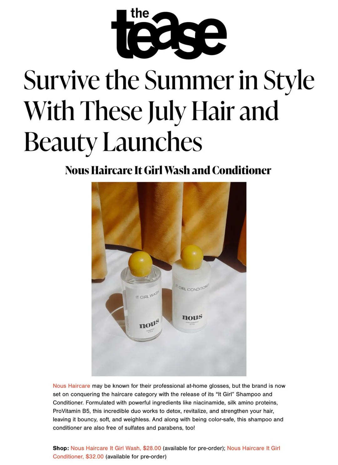 Nous Haircare, founded by bi-coastal hair-colorist Tylor Johnson, redefines luxury in haircare. Tylor’s eye for industry insights revealed a critical gap: a need for haircare products that are not only effective and easy to navigate but also crafted with clean ingredients and results that speak for themselves. Embracing both sophistication and clean beauty, Nous Haircare transforms the daily ritual into a refined, results-driven experience.